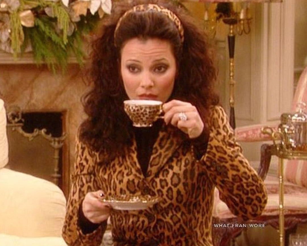 With her incredible mix of warmth, chutzpah and razzle dazzle, Drescher endeared herself to a generation of aspiring Flashy Girls (from Flushing and beyond) who lay their sequins at her feet in praise to this day. And in an era that celebrates camp, (bolstered by Instagram fan accounts like @whatfranwore and @thenannyart), she’s become the Millennial generation’s patron saint of maximalist style.